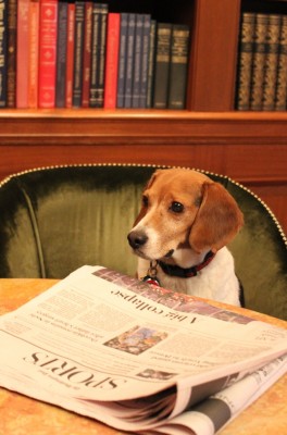 Lord Monticello, known as "Monti" to his friends and admirers at The Jefferson, Washington, DC, is the newest furry addition to the hotel’s family. Presiding as the first official Canine Executive Officer [CEO], Monti embodies many of the admirable traits so useful in the hospitality industry; being intelligent, companionable, good humored and willing to do whatever it takes for a unique guest experience, even if that means rolling over in the lobby for a belly rub. Monti, the sorrowful but adorable faced beagle happily serves as good-will ambassador to all guests from the animal kingdom, as well as human guests who might welcome a four-legged companion.