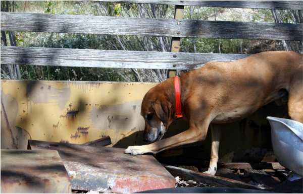 K9 Sula indicating the location of human remains during a training session. Photo Credit: Shirley Brantingham