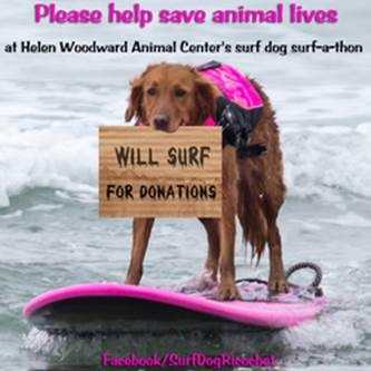 On September 8th, I'll be surfing in the Helen Woodward Surf dog Surf-a-thon to raise funds for orphaned pets.
