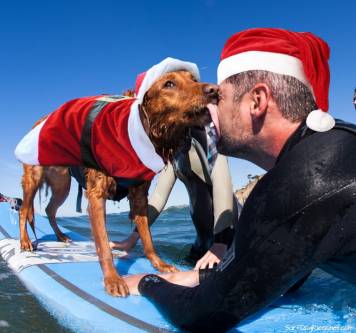 Ricochet traded her life jacket for a Santa Jacket, and surfed to town to kick off her 8th annual Surfin’ Santa Paws Howliday Giving Drive in conjuction with Paws'itive Teams Emotional Support Dog program (ESD). She delivered puppy elves, including her new puppy, Encore (Cori) to veterans with PTSD for Operation Socialization.