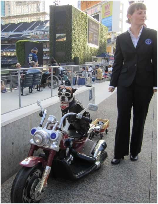 - Chopper the Bike Dog poses with Guinness World Record official Freddie Hoff who verified that the record was set at Petco Park.