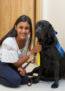 Madelaine, age 13, is one of D4D’s many young clients and is an excellent example of how teaming a D4D trained dog with a client can transform lives. “When I was placed with Rialta it was the best day ever! She has forever changed my life. Rialta goes everywhere with me, swim meets, rollerblading, school, and even to sleepovers. She is always watching over me, and keeping me safe. I feel more independent and confident with her by my side. Rialta and I can handle any obstacles diabetes throws my way. I’m so grateful for Rialta and thankful for the support she brings me and my family.”