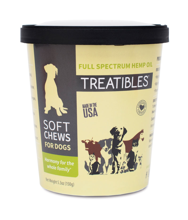 Featuring a proprietary blend of organic full spectrum hemp oil, turmeric, papain and bromelain, these chews are ideal for seniors, those with chewing limitations and dogs preferring a softer consistency. Benefits may include easing anxiety, promoting healthy joints and digestion, maintaining the body's normal inflammatory response, addressing discomfort, seizures, and more. treatibles.com