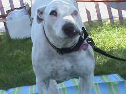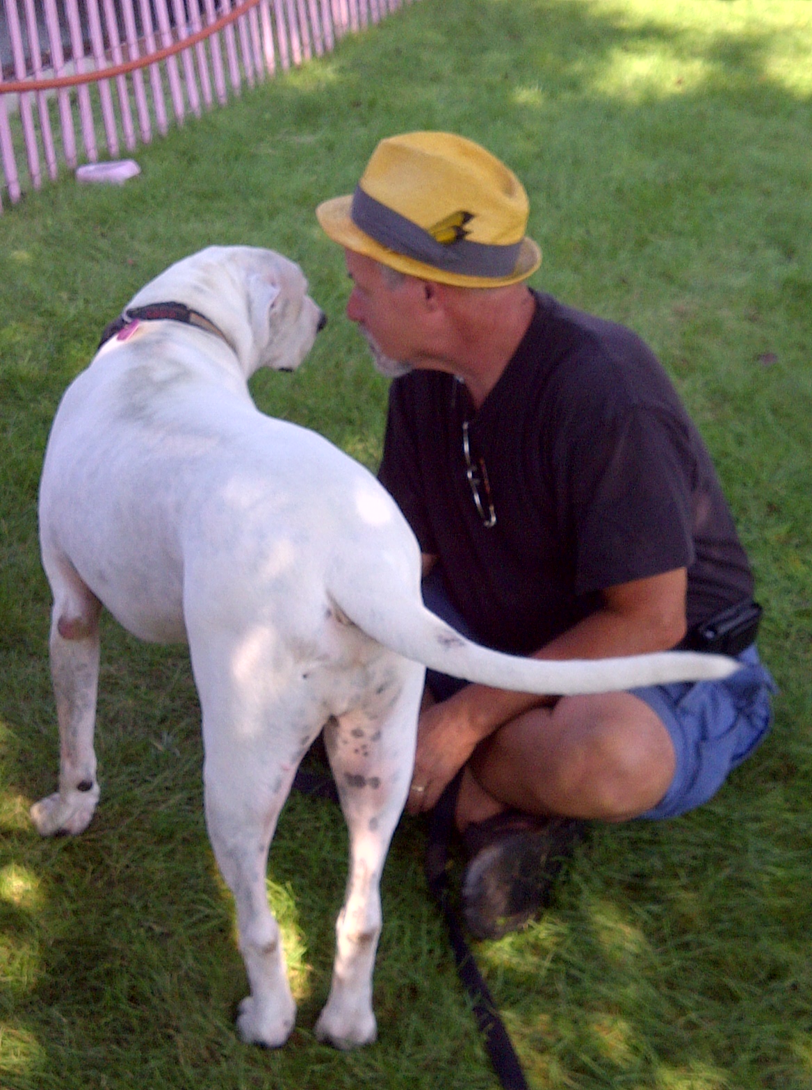 We had the booth next to FIDO Friendly magazine cover dog, Oogy. Oogy's dad, Larry Levin, signed books and Oogy was on hand, er paw, to greet his fans. What a loving boy and inspiration.