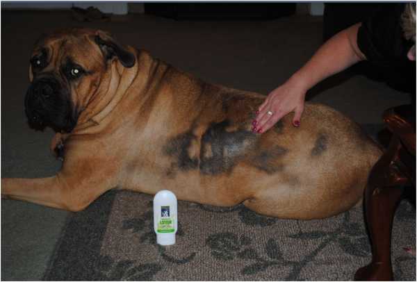Then we noticed his hair started falling out and his skin seemed to be getting darker in those areas. We took him to the vet for an exam and blood work at which time he was diagnosed with thyroid disease and would have to be on medication (Soloxine) for the rest of his life. The medication was suppose to also help stop the hair loss but instead it got much worse and his skin got really black. We also started him on Omega 3 supplements hoping it would help his skin but still no change. The Soloxine helped him lose weight and he now has tons of energy but we were still dealing with his skin problem.