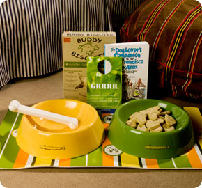 • Pet bed and food and water bowls delivered to your room
