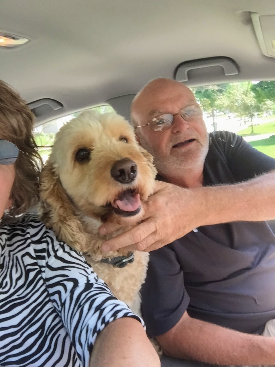 They grabbed my stuff, locked the door and hustled me to their back seat. With my hind legs on the floor and front legs pawing Grandpa, we drove off.