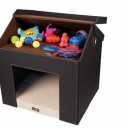 My dog isn’t much of a crate-mentality pooch; having trained him early on, he has free roaming rights of the house. So, too, do his toys. I never know exactly where to store them so that whenever he wants to play they are easily available. Ooboo solved that dilemma for me.