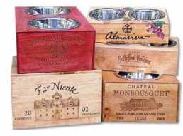From unique, eco-friendly, authentic hand-crafted wooden wine crates from prestigious European, Californian, Australian and Chilean vineyards comes the Whiner and Diner bowl for your pooch.