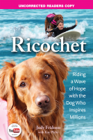 Tuesday June 3, 2014 marks the official launch of this wonderful book Ricochet: Riding a Wave of Hope with the Dog Who Inspires Millions Judy Fridono shares the emotionally-moving story of Ricochet, the beloved golden retriever who went from puppy prodigy to service-dog dropout before becoming an inspirational phenomenon and Internet sensation.