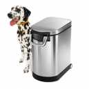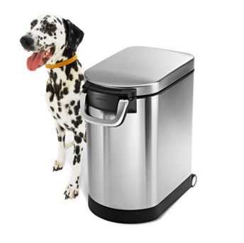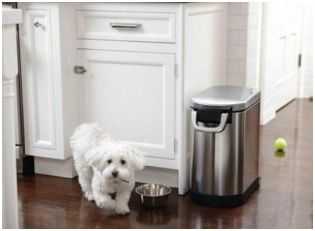 A stainless steel canister sits regally in my dogs kennel area of the laundry room. It looks pretty fancy and I like that. But what I really like is that this fingerprint-proof pet food can, has an ergonomic lock-tight handle which forms an airtight seal to keep food fresh.