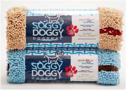The Soggy Doggy Doormat absorbs five times more water than regular cotton doormats and soaks up water and dirt like a sponge. Both products are quick drying, remain bacteria and odor-free and are exceptionally durable, just machine wash and dry.