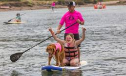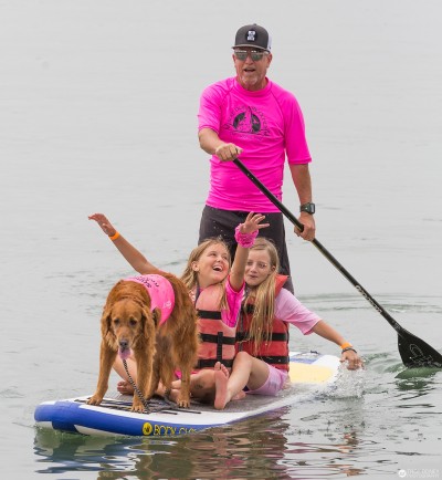 Each veteran or adult becomes a mentor, and is matched one-on-one with a child with special needs. The program focuses on canine-assisted surfing, paddling, playing and therapy. And, thanks to Body Glove who donated two inflatable stand-up paddle boards to the program, and to Redfin who sponsored Sunday’s event, Ricochet is able help even more veterans and kids. Activities are facilitated by Ricochet who is a registered, certified and top AKC titled therapy dog.