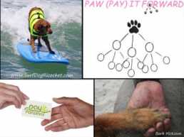 An excellent example of how powerful paying it forward can be, is Ricochet’s YouTube video “From Service dog to SURFice dog”. Each person who watched it was inspired, and wanted to share the inspiration with someone else… so they paid the link forward to others. The cycle continued and the video went viral, touching millions of lives around the world. Ricochet has posted a new video, specifically about paying it forward, and is now inspiring people to get involved on Pay It Forward Day!