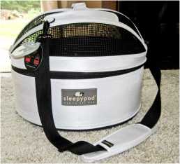 The Sleepypod carrier comes with a removable mesh dome top with carrying handle, machine washable and replaceable bedding, padded shoulder strap, a water-resistant foam liner and instructions for use. A low-power Warmer Pad or replacement bedding can be purchased separately. Be aware that the regular size Sleepypod does not meet airline regulations, but the Sleepypod Air does.
