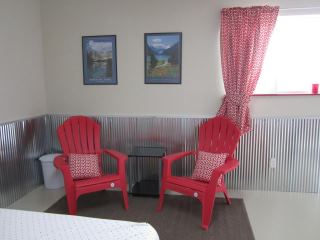 Campers stay on site in "theme rooms" such as the Canada room (photo shown below), the Corgi Room, the Texas Room, the MUSHroom (sled dogs), English Shepherd Room or the Purple Room.
