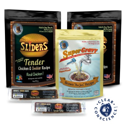 Clear Conscience Pet® has been recognized with 7 Awards for Nutritional Excellence! SuperGravy® instant holistic pet gravy mix and Sliders® Tender meaty treats are DELICIOUSLY NUTRITIOUS™, ALL NATURAL, and guaranteed to please the pickiest pets! Enter code FIDO20 at checkout for 20% off at www.clearconsciencepet.com
